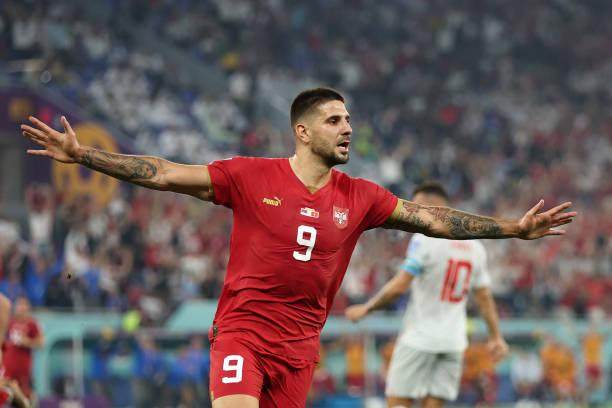 第27分钟,塞尔维亚中场断球反击,塔迪奇左路吊传禁区,米特罗维奇禁区内头球甩入远角,1比1!